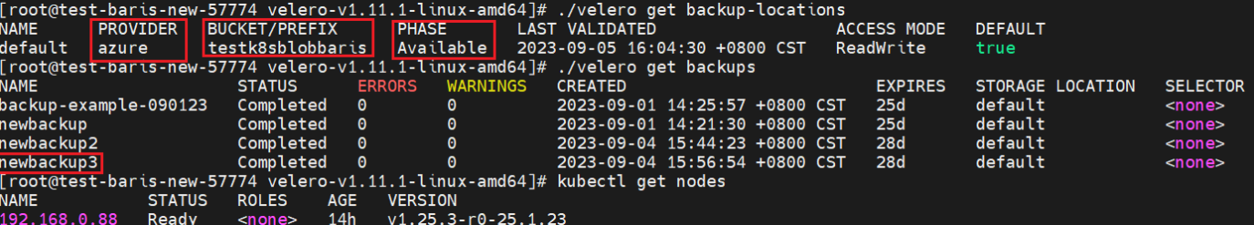 - To see all available backups, use the command: “./velero get backup-locations”.
