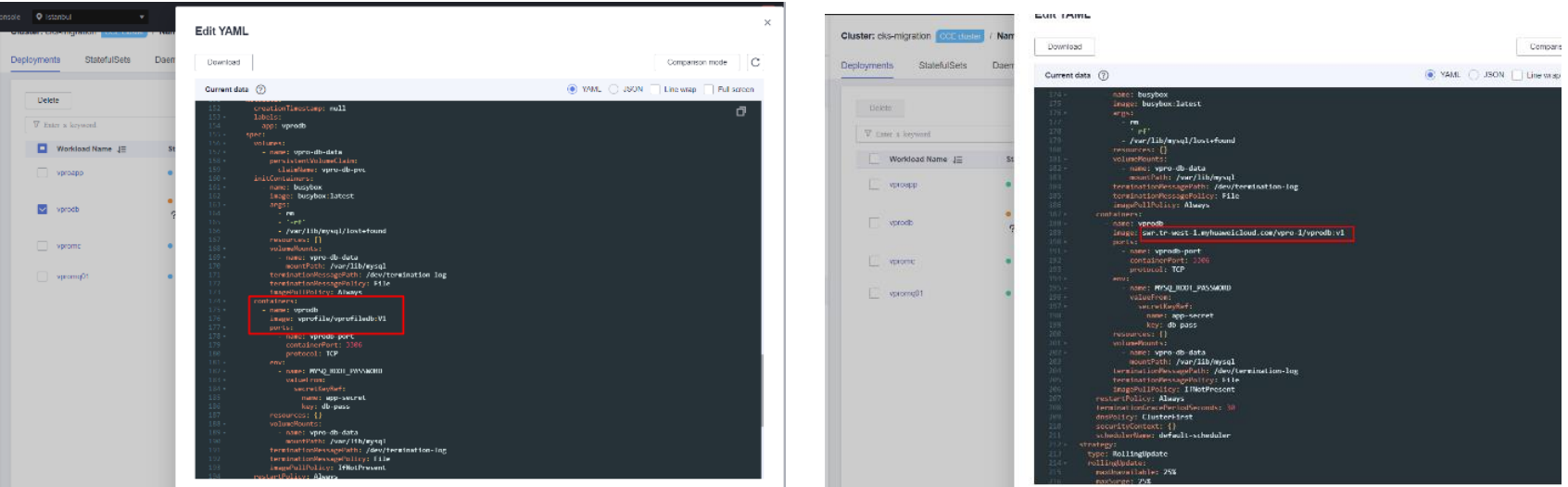 Update the image fields in the yaml files within the CCE cluster according to your SWR.