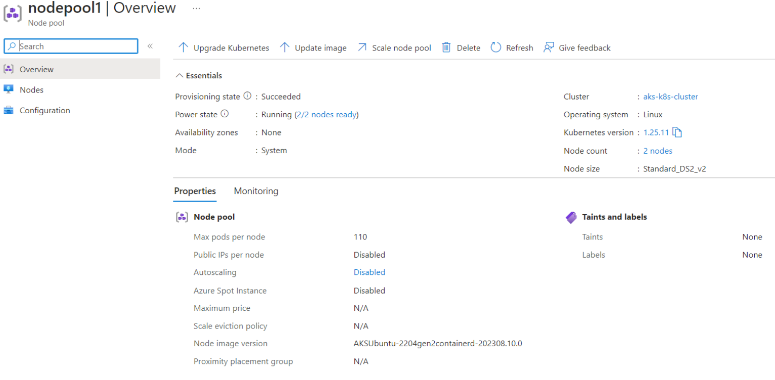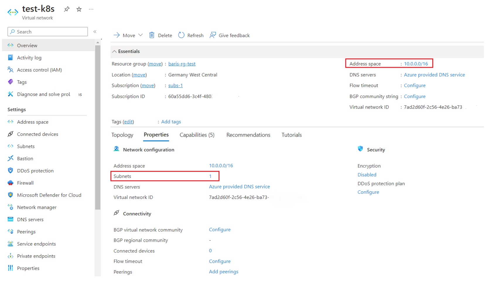 In this example, AKS has 1 VPC with 1 subnet. Virtual networks were used to manage IP addresses, security, integration with Azure services, and other network-related features for AKS nodes. They are an essential part of deploying and managing AKS clusters on Azure.