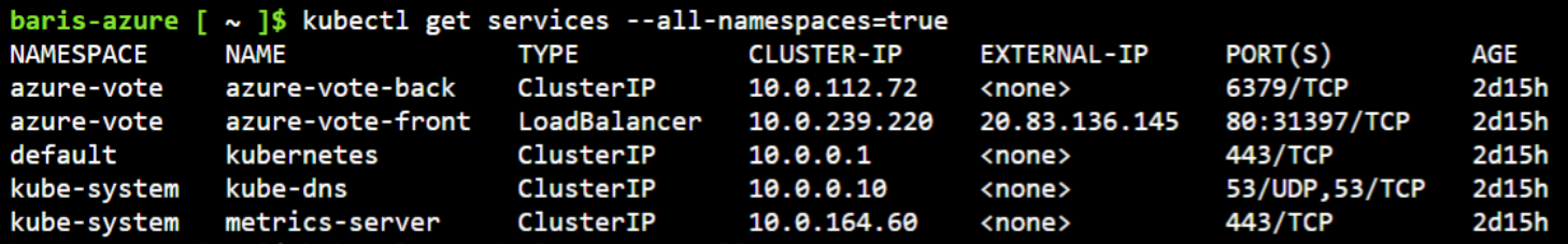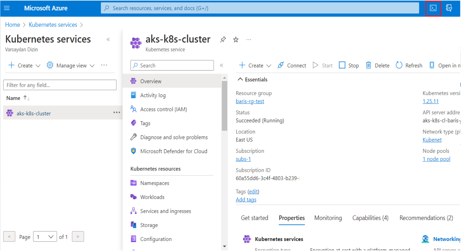 Connect to the cluster using the scripting tool to interact directly with the cluster using kubectl, the Kubernetes scripting tool. Kubectl is available within the Azure Cloud Shell by default and can also be installed locally.