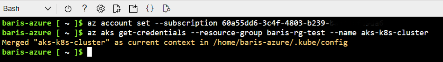 - After opening the cloud shell, you also need to configure the cluster subscription and download the credentials.