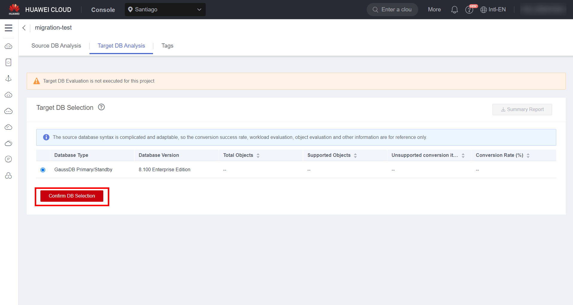 Confirm the target database engine and click “Confirm DB Selection”.