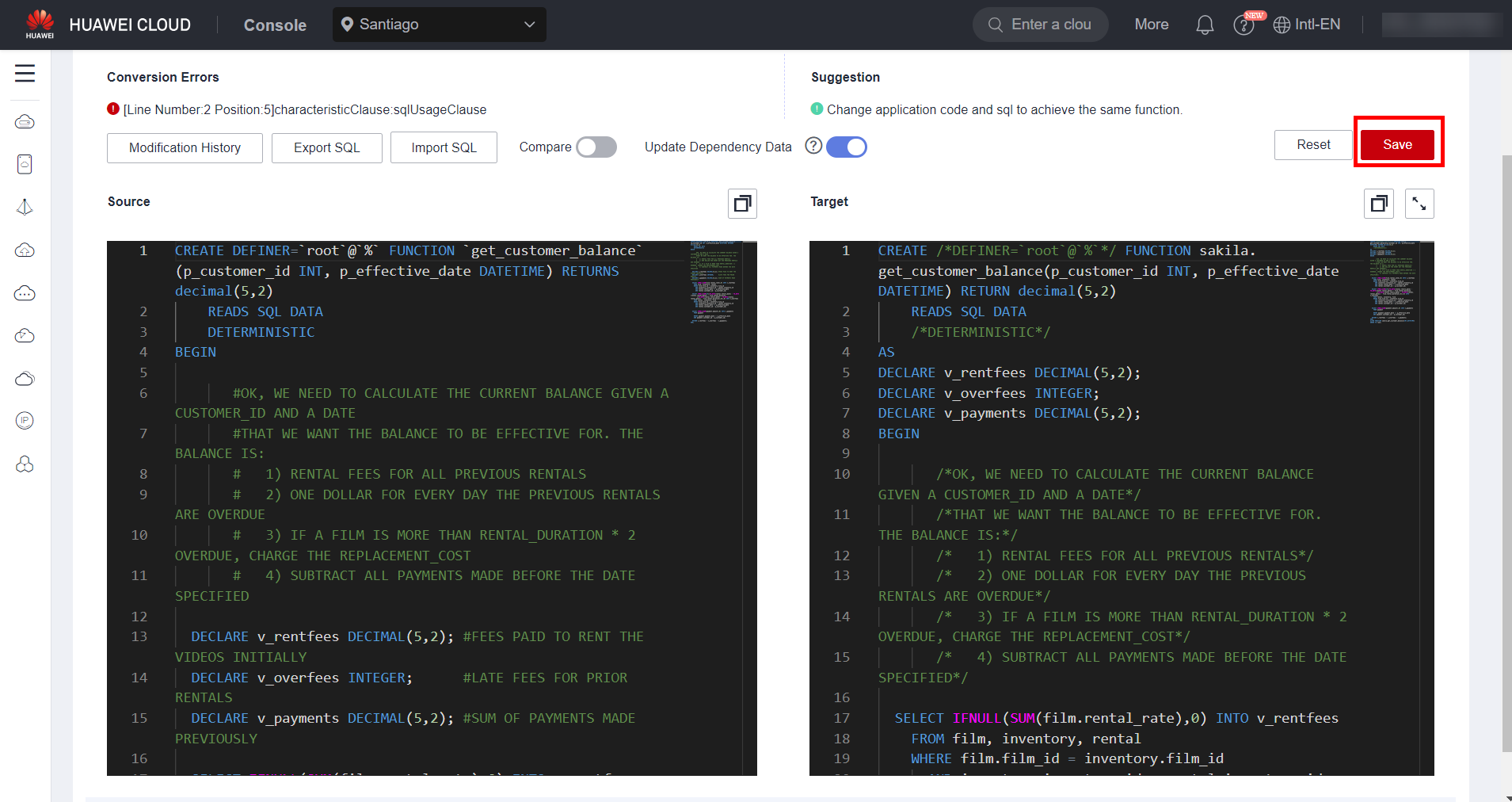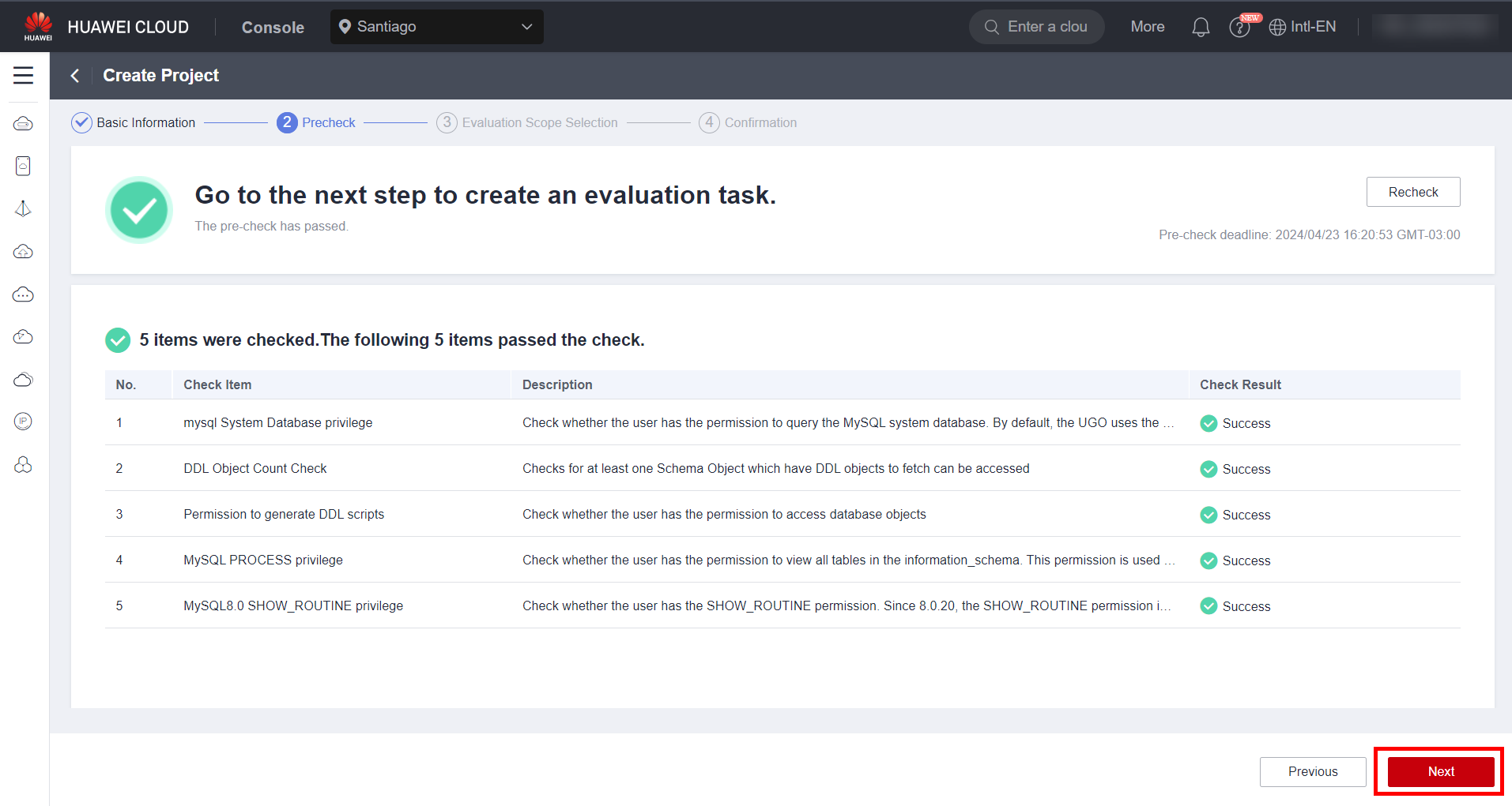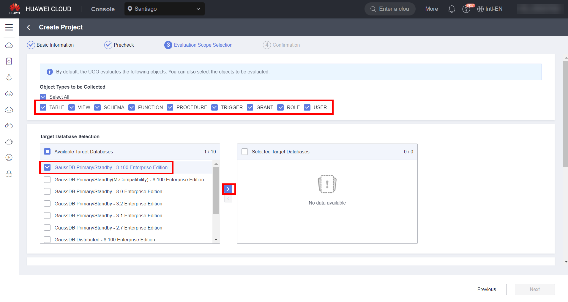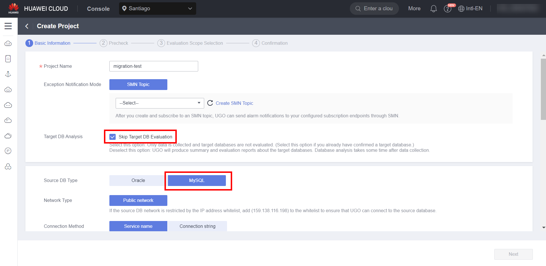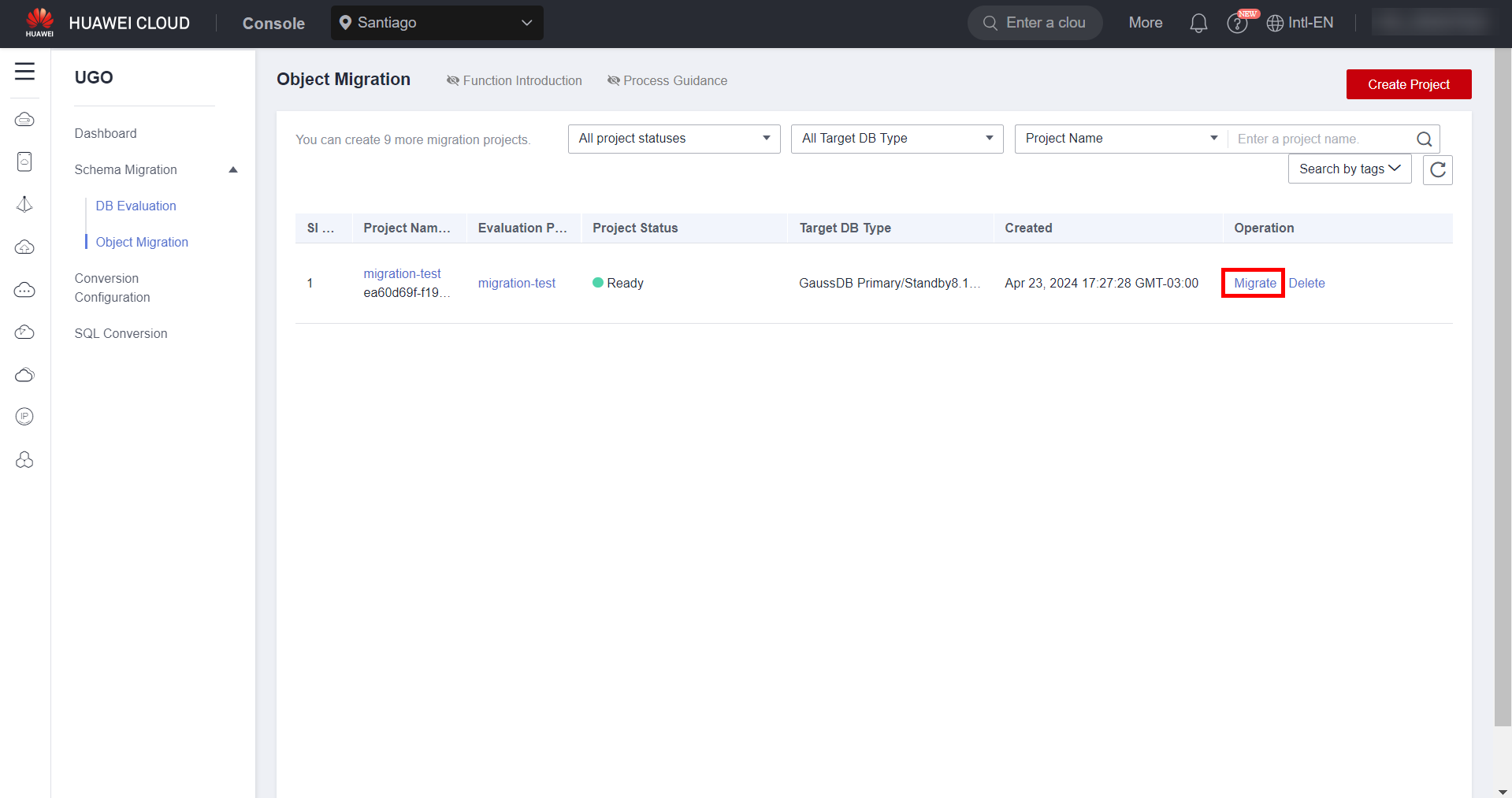 To migrate a MySQL database to GaussDB, it is necessary to use the UGO service available at HWC to evaluate the migration and convert the source database syntax to a syntax compatible with the target database, in addition to checking the compatibility of the source engine with the target engine. To access the UGO service, simply search for “UGO” in the list of services available in the HWC console. It is worth noting that the service is only available in the regions of Santiago and Singapore.