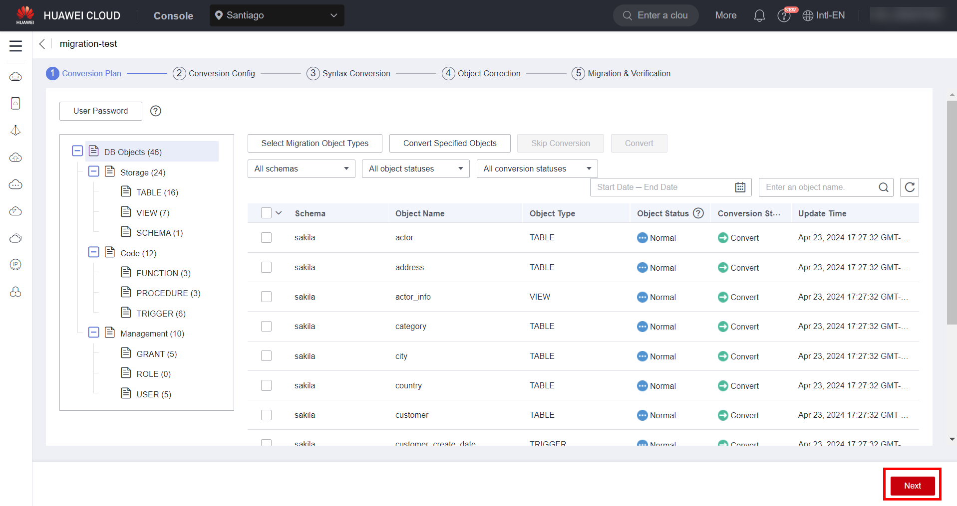 Confirm the objects to be migrated as well as the objects not to be migrated using the “Select Migration Object Types” and “Convert Specified Objects” buttons. Click “Next” to continue with the object conversion.