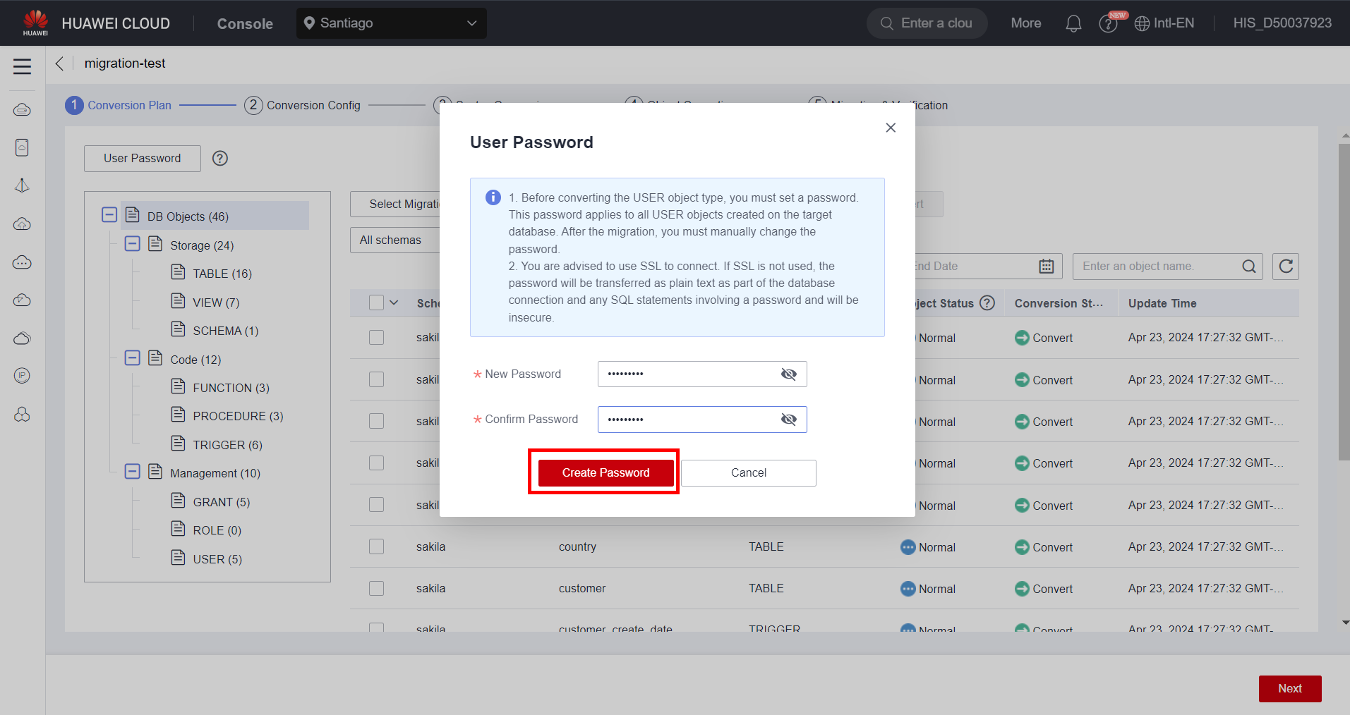 Create a temporary password so that user type objects can be migrated. Note that after migration, you need to manually change the password. Click “Create Password” after entering the password.