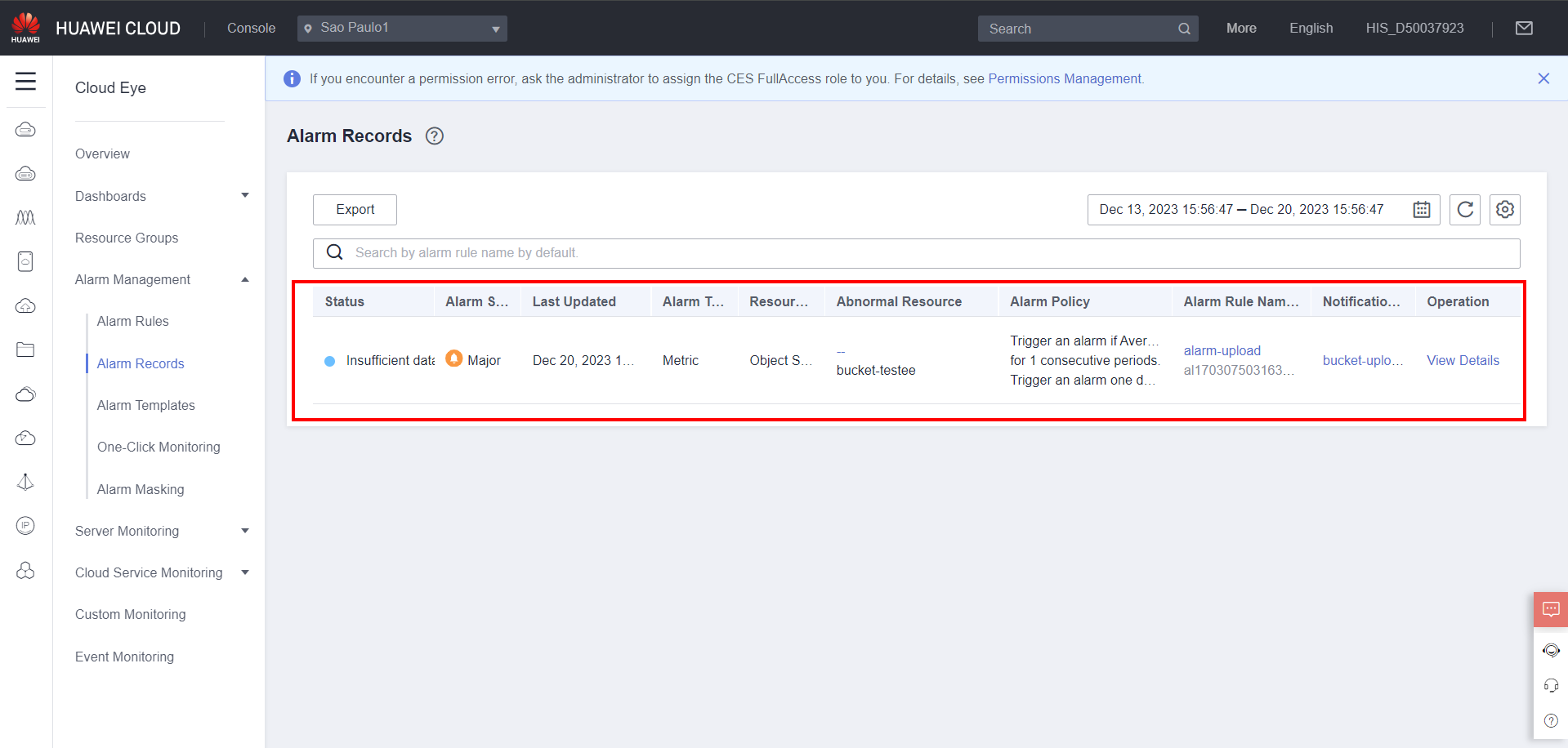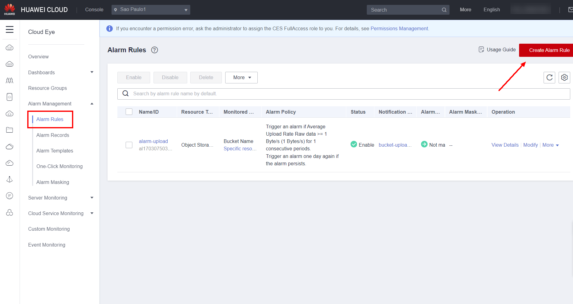 Cloud Eye on the console