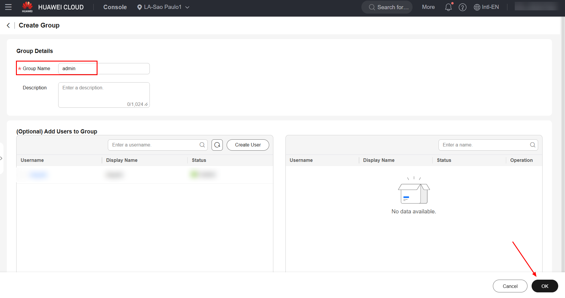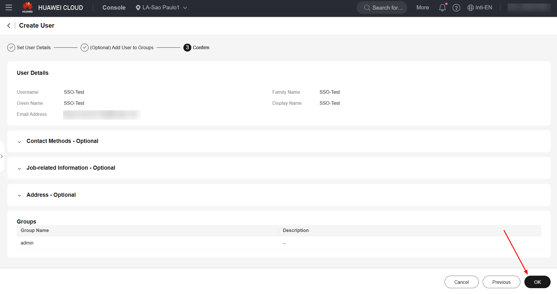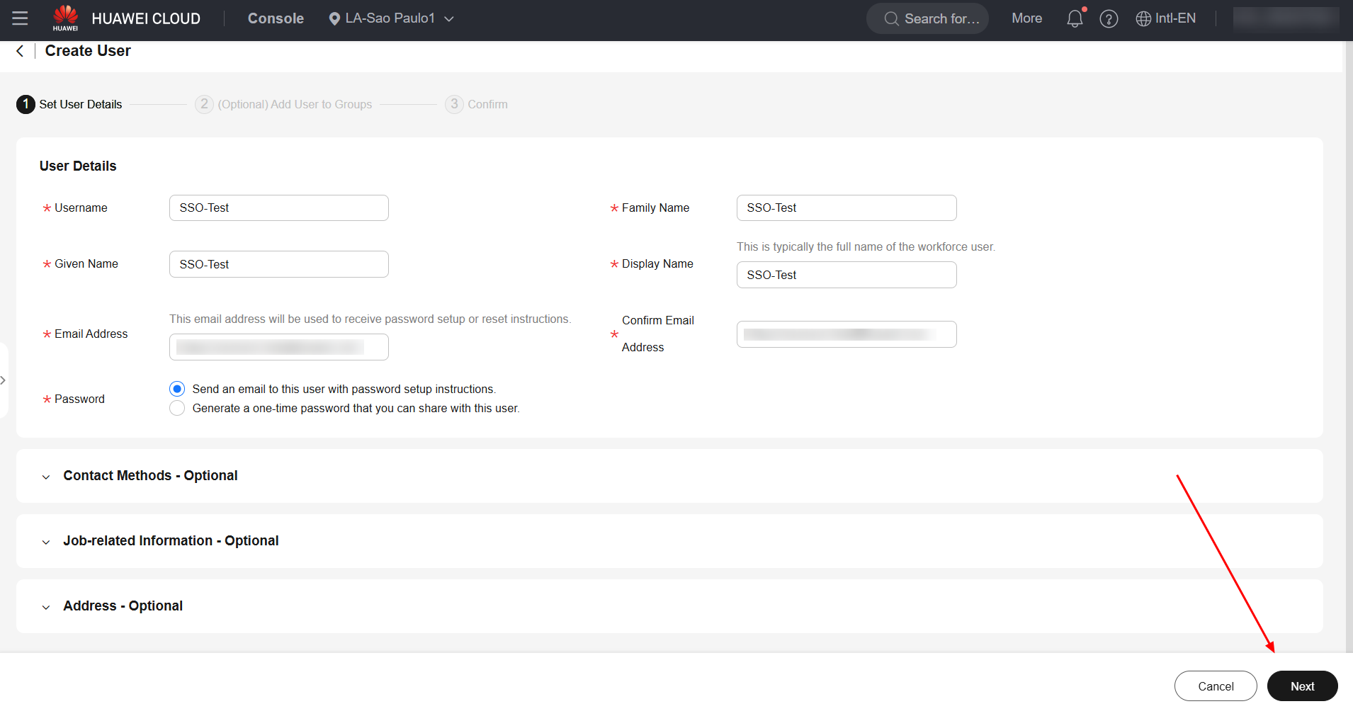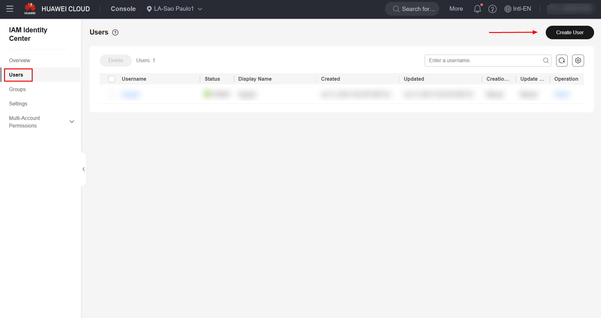 Note: To perform Huawei Cloud user federation, users must first exist. If there is no user created in Keycloak, create a user.
