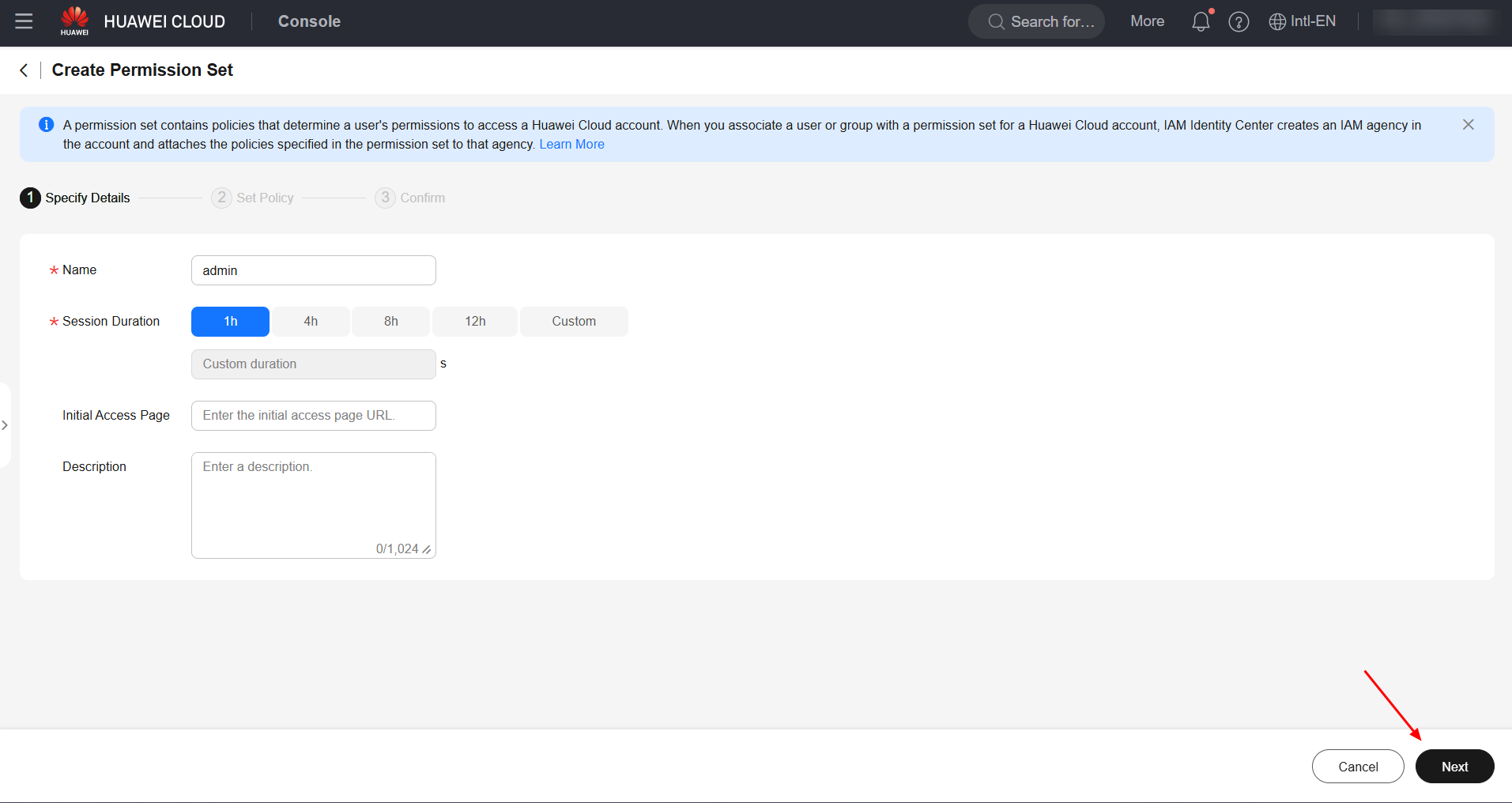 Fill in the fields related to the user’s session time and the permission set name and click “Next” to continue.