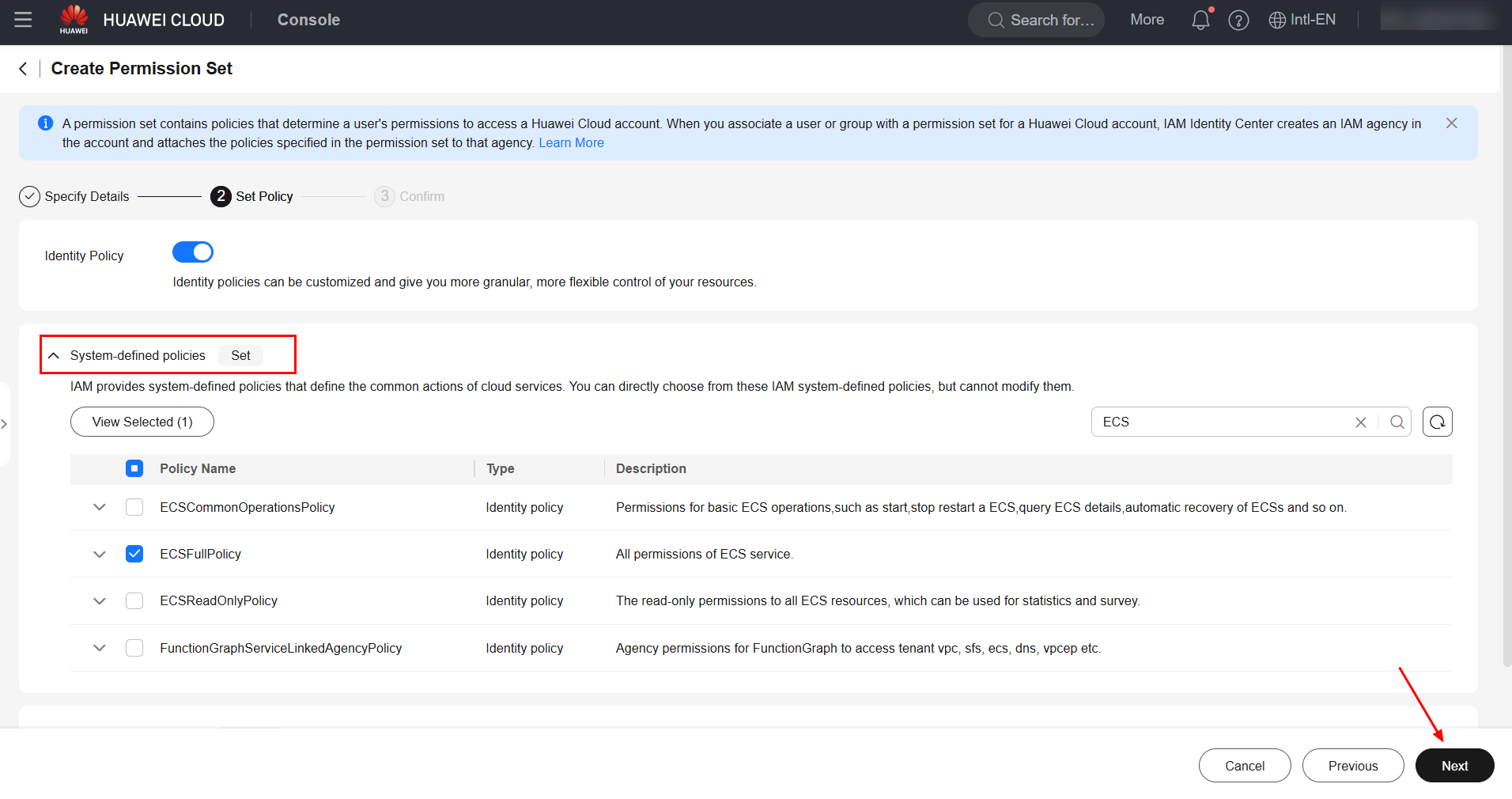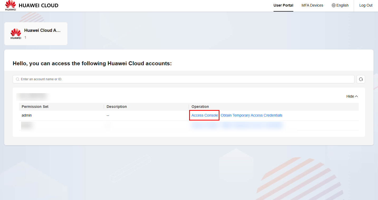 Click “Access Console” next to the desired permission set to log in to the desired account.