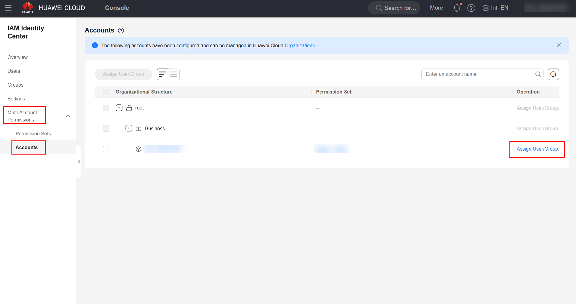 Finally, you will need to configure a triple for the user, permission set and account, in order to delegate permissions to users to specific Organizations accounts. To do this, navigate to the “Accounts” subsection in the “Multi-Account Permissions” section, and click “Assign User/Group” for the desired account.