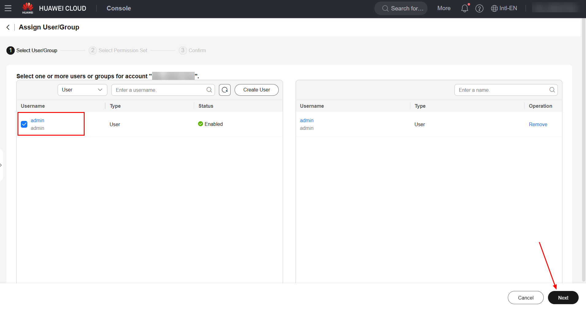 Select the users that will have access to the selected account and click “Next” to proceed.