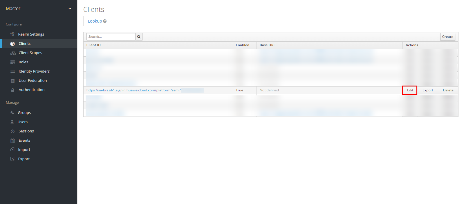Navigate to the Huawei Cloud client you created and click “Edit” to edit the client settings.
