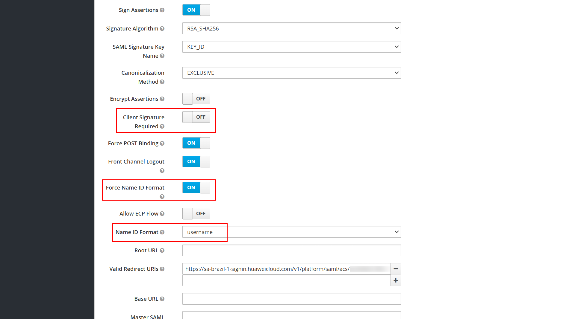 Turn off the “Client Signature Required” option, enable the “Force Name ID Format” option, select the “Name ID Format” field as “username” and click “Save” to save the changes made.