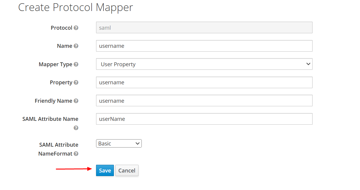 Select the “Mapper Type” as “User Property” and fill in the fields as shown in the image below.